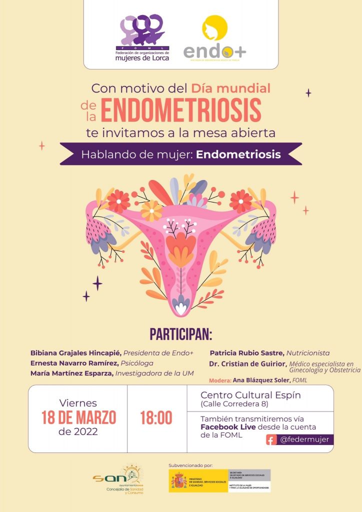 Con el fin de apoyar la iniciativa de la Asociación Endo+, integrada por afectadas de endometriosis de la Región de Murcia, la FOML se suma a su causa, organizando una mesa redonda informativa, que contará con las siguientes profesionales, dedicadas, involucradas, sensibilizadas e investigadoras de esta enfermedad: